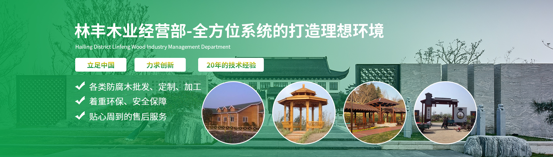 是目前中國市場從事防腐木生產(chǎn)經(jīng)營、木構(gòu)造工程較早的業(yè)務(wù)之一。 林豐木業(yè)致力于打造中國具實(shí)力的防腐木材生產(chǎn)、加工、研究基地。為生產(chǎn)高品質(zhì)的防腐木制品提供了堅(jiān)實(shí)保證。